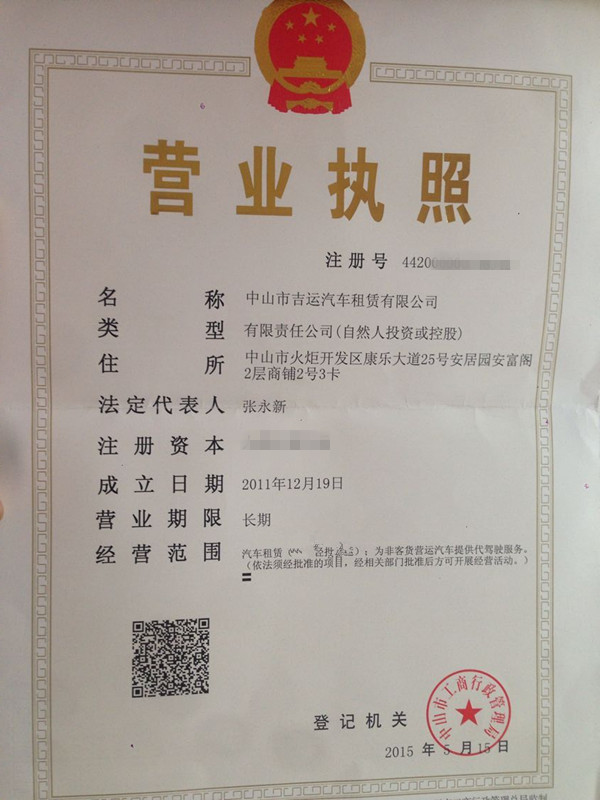 中山市吉運汽車租賃有限公司